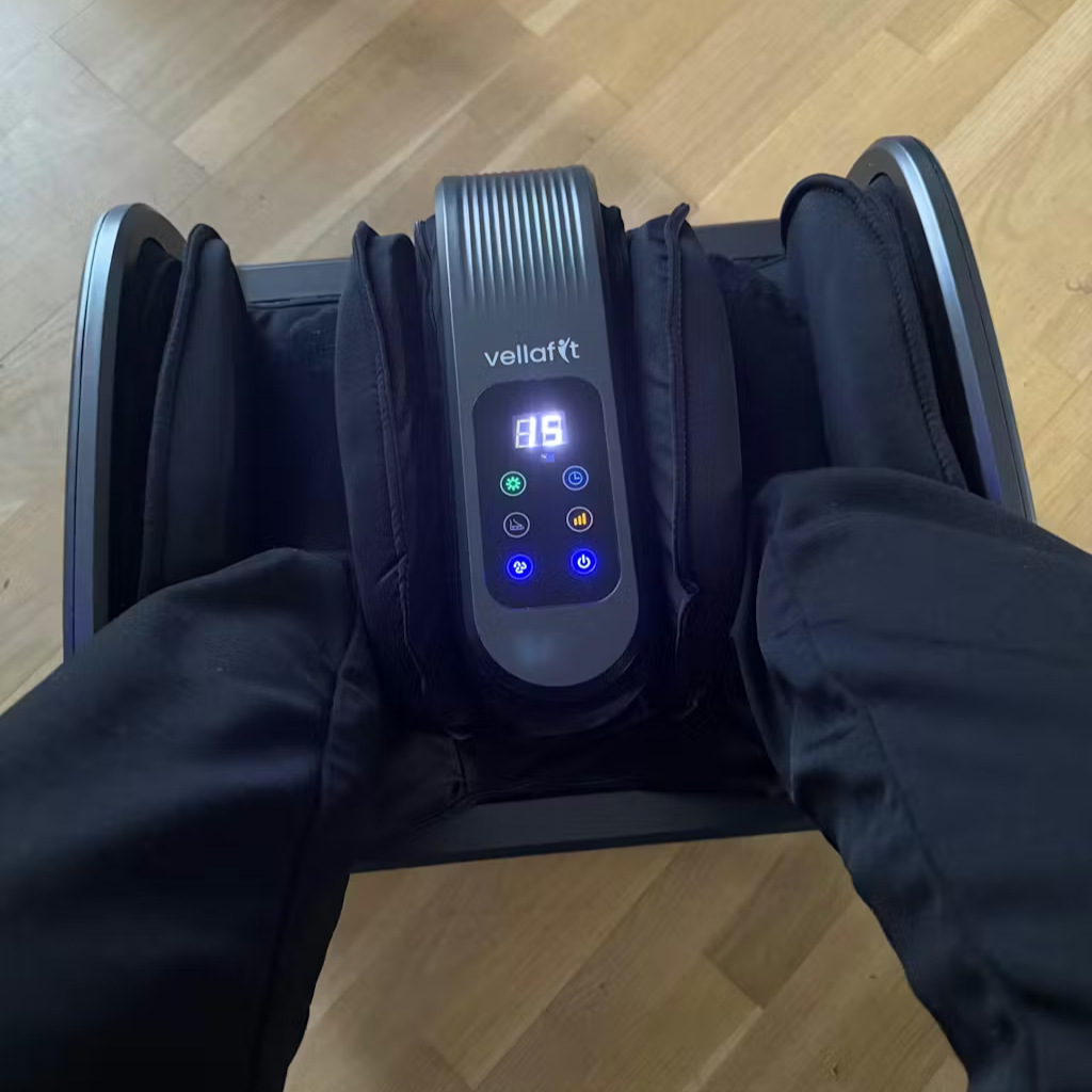 Vellafit Jalkahierontalaite Pro yhdistää shiatsu-hieronnan, lämmön ja ilmakompression jännityksen lievittämiseksi ja verenkierron edistämiseksi. Se jäljittelee ammattimaisia hierontaotteita ja antaa rentouttavan, syvävaikutteisen hieronnan jaloille ja pohkeille.