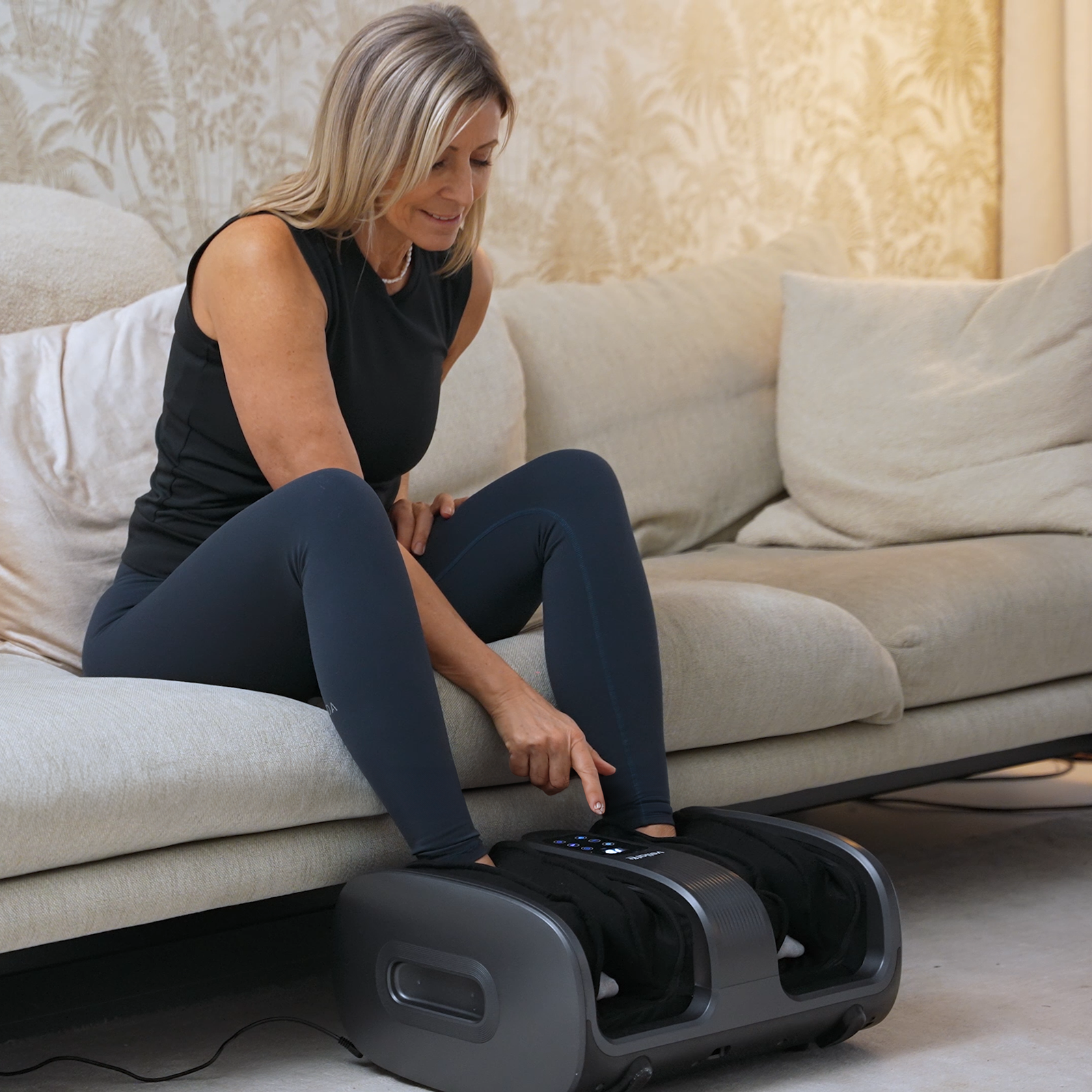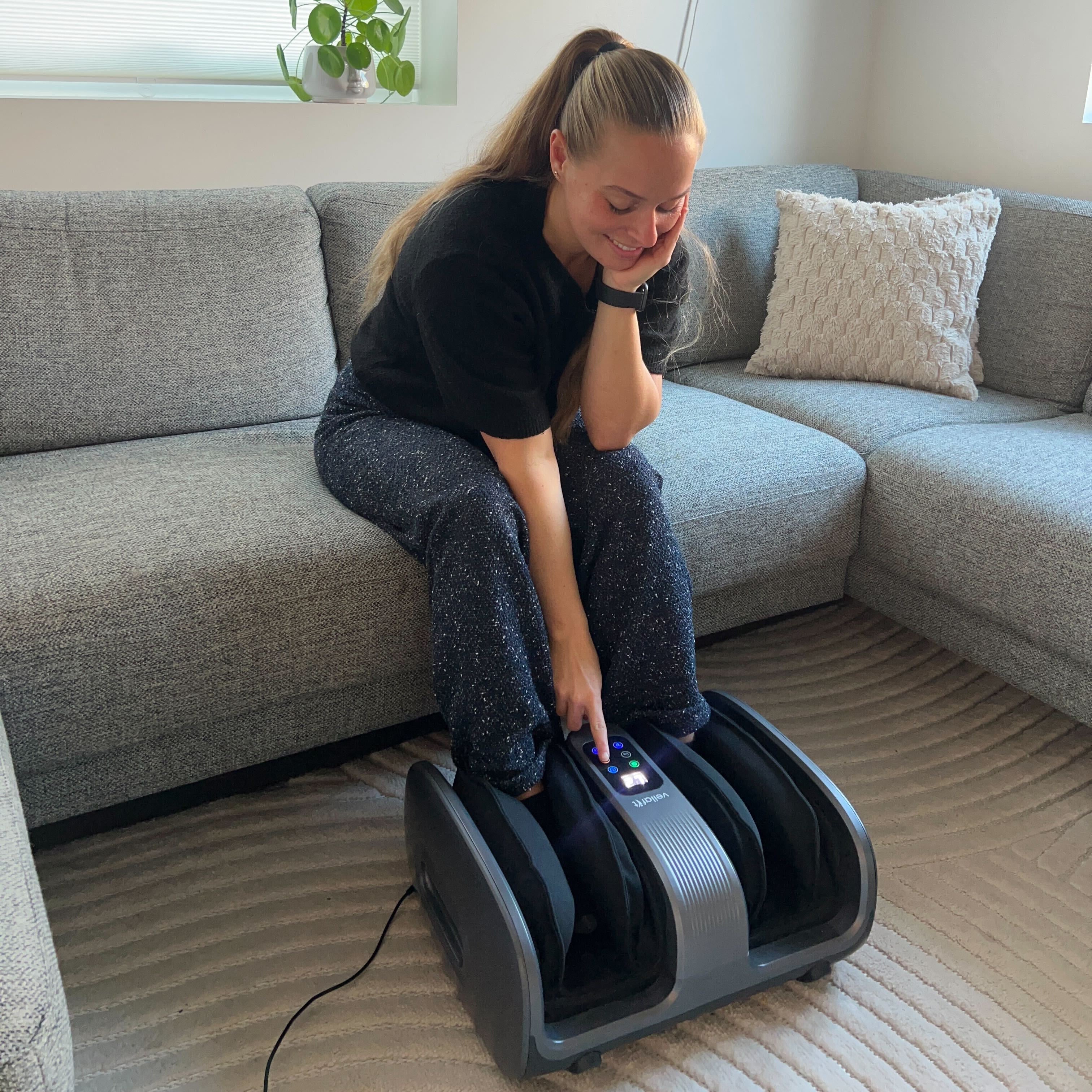 Shiatsu-hieronta on perinteinen japanilainen hierontatekniikka, joka vaikuttaa jalkojen painopisteisiin verenkierron parantamiseksi, kivun vähentämiseksi ja jännityksen lievittämiseksi. Vellafit Jalkahierontalaite Pro soveltaa tätä tekniikkaa yhdistettynä lämpöön ja ilmakompressioon rentouttavaa ja tehokasta hierontaa varten.